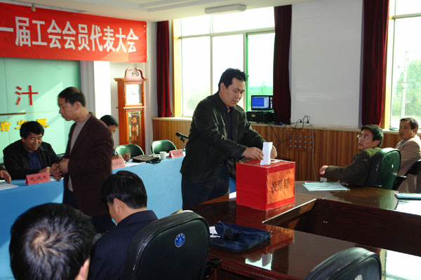 按照大会规定议程,依照民主集中制的原则,会议采取无记名差(等)额投票方式,选举王根成、马荣武、熊建设、杨晓霞、杨宏、汝强、刘颖平、赵志军、柳爱军为公司第一届工会委员会委员;王根成为公司第一届工会委员会主席;杨宏为公司第一届工会委员会副主席;胡多勇、毛一兵、陈晓兰为公司第一届工会经费审查委员会委员;胡多勇为公司第一届工会经费审查委员会主任。