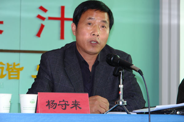 天水市总工会副主席杨守来高度赞扬了本次大会筹备精心、安排规范,公司党委对群体组织重视、指导有方。同时对公司多年来带动广大果农创收、增效给予了充分肯定。对这次大会的圆满成功表示祝贺!同时希望新一届工会委员会积极开展工作,依法行使权利和履行义务,维护职工合法权益。组织职工积极投入公司的生产经营活动,为积极应对金融危机发挥重要作用,推动企业持续稳定发展。