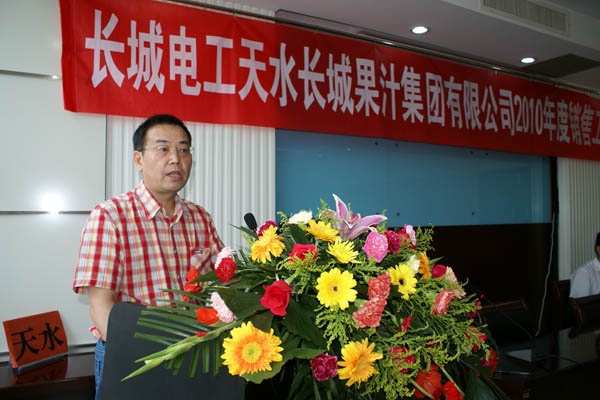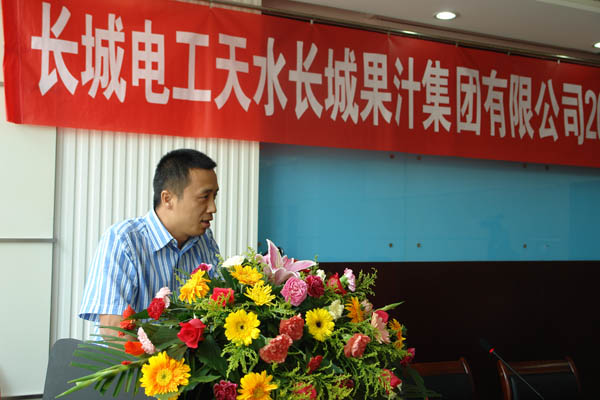 兰州长城电工股份有限公司副总经理毛建光作重要讲话。他首先代表长城电工对本次会议的成功举办表示热烈祝贺!指出2009/2010榨季长城果汁经受住了果汁行业的严峻挑战。面对2010/2011榨季,我们要保持积极乐观的心态,坚定信心,逆势而上。