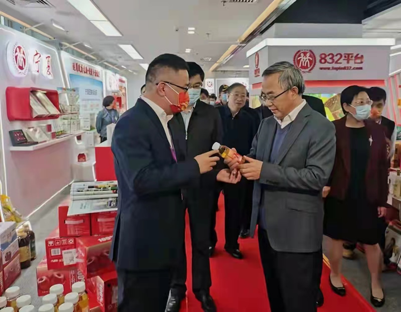10月26日,2021脱贫地区农副产品产销对接会启动仪式在北京举行。中共中央政治局委员、国务院副总理胡春华出席启动仪式并参观北京展区。长城果汁营销负责人郑建庆向胡春华副总理就长城果汁生产的“陇上花牛”100%苹果汁产品特性、销售规模、合作模式和产业带动情况做了详细汇报。