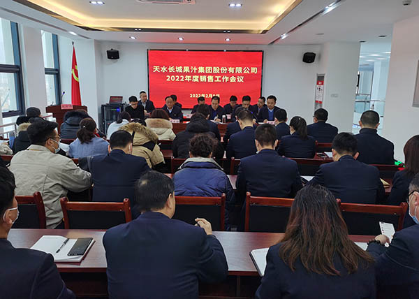 2月9日,长城果汁召开2022年度销售工作会议。集团公司总助及以上领导、部门负责人、各子公司董事长、总经理、学生营养餐各片区经理、副经理、终端全体销售业务人员参加会议。会议由党委委员、副总经理张军主持。
