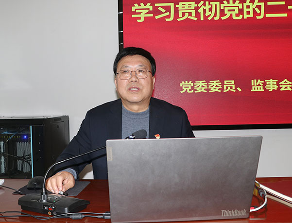 11月8日,党委书记、董事长王小宏在党委理论学习中心组进行宣讲,围绕“党的二十大报告起草过程”“党的二十大主题”“党的二十大主要成果”“过去5年党和国家事业取得举世瞩目的重大成就”“新时代10年的伟大变革及其里程碑意义”“马克思主义中国化时代化”“中国式现代化”“全面建设社会主义现代化国家的目标任务”八个方面,对党的二十大精神进行了全面系统、深入浅出的解读。同时,就下一步深入学习宣传贯彻党的二十大精神进行了安排部署。