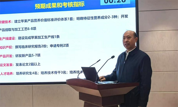 12月6日,由天水长城果汁集团股份有限公司与中国农业大学联合开展的中央引导地方科技发展资金储备项目“苹果精深加工关键技术研究与产品创制”项目答辩会在甘肃省科技厅计算机中心成功举办。中国工程院院士、中国农业大学教授、教育部全国学校食品与营养健康工作专家组组长任发政带领团队参加了答辩,公司党委书记、董事长王小宏一同答辩。