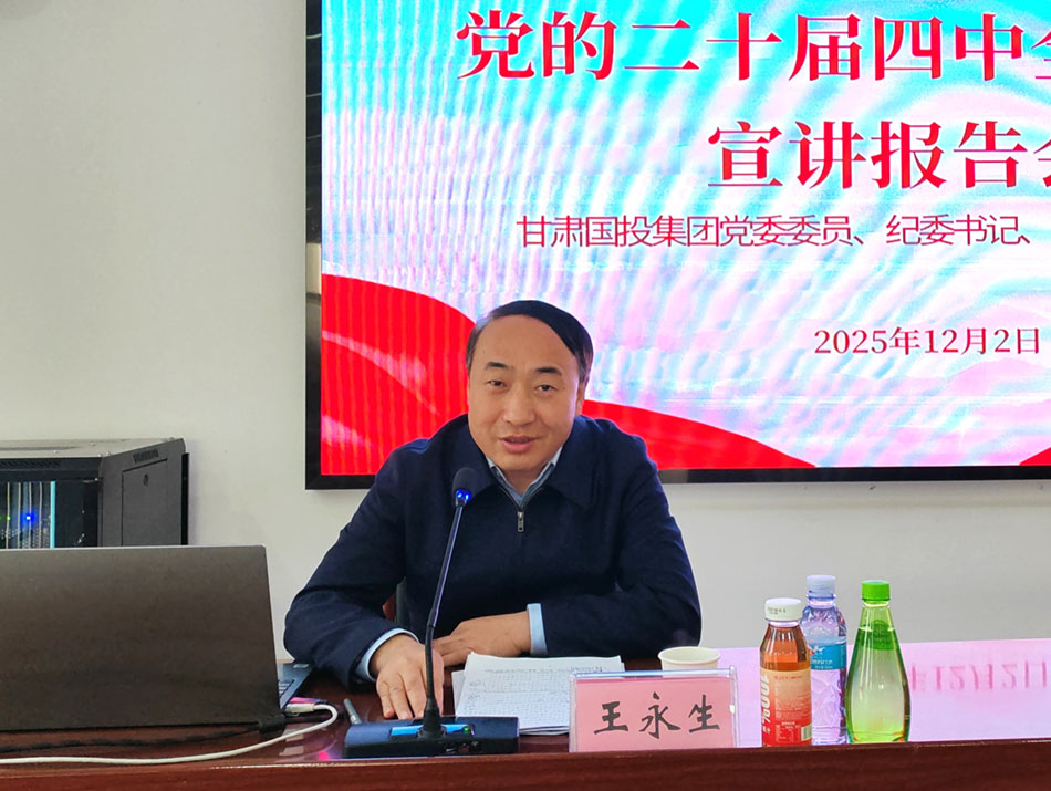 12月2日,甘肃国投集团党委委员、纪委书记、监察专员王永生在长城果汁宣讲党的二十届四中全会精神。王永生紧紧围绕学习贯彻党的二十届四中全会精神和习近平总书记重要讲话精神,重点从三个方面对全会精神作了系统宣讲和详细阐释,并结合长城果汁改革发展实际,对公司“十五五”规划提出了指导性意见,对全体党员干部提出了殷切希望和工作要求。